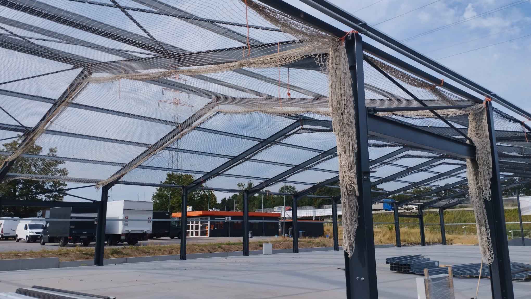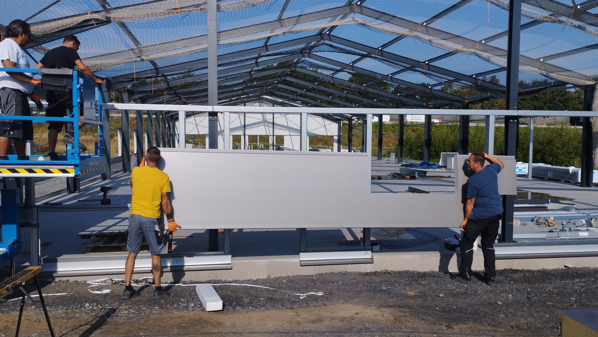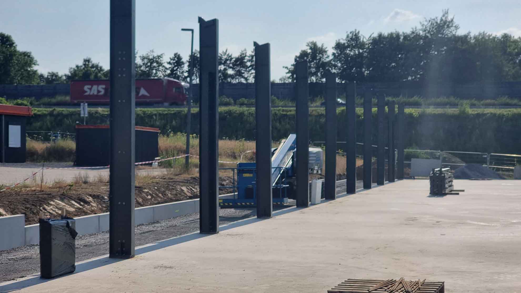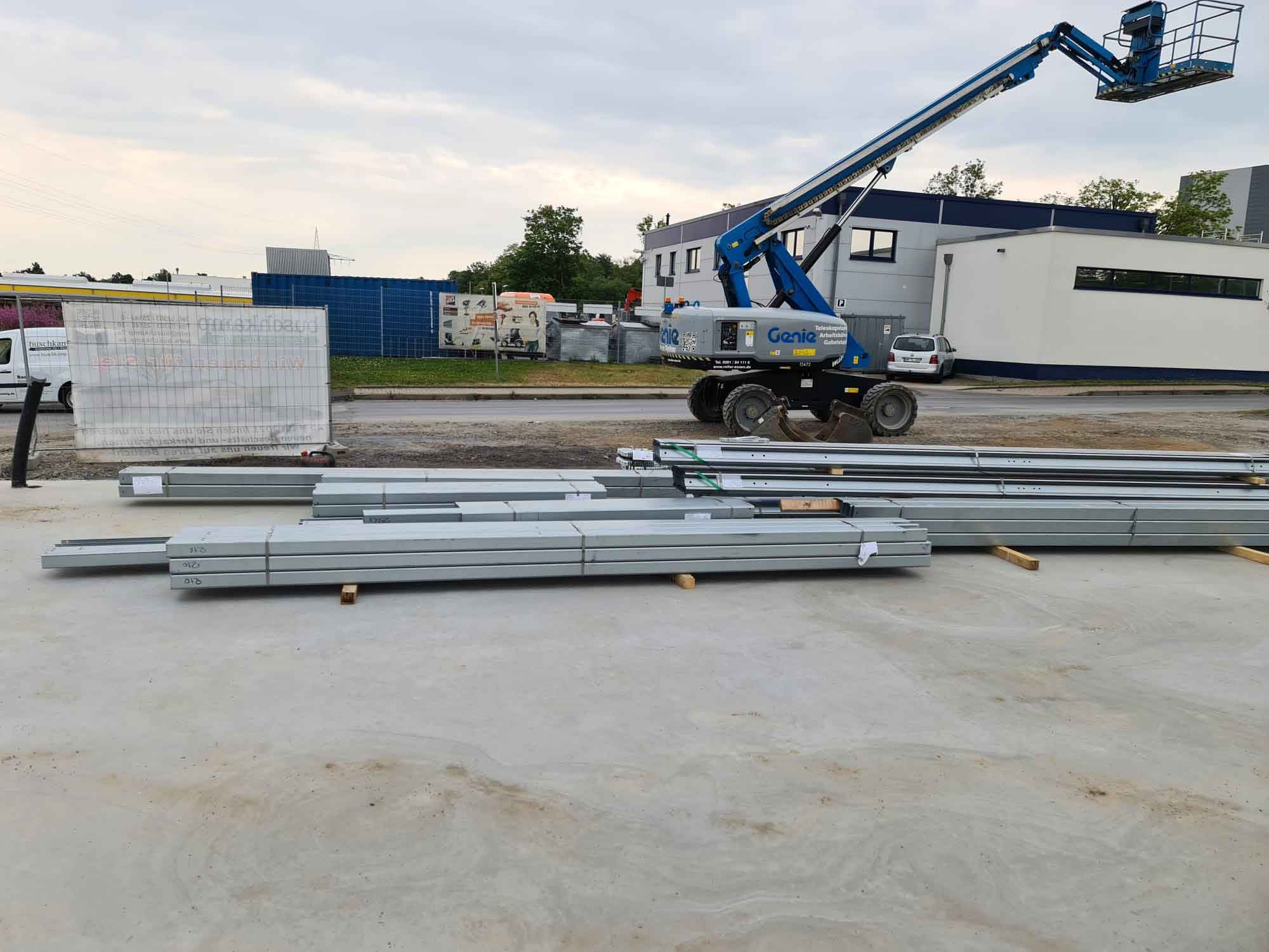 Langsam ist es als Halle erkennbar.Ab der 30. KW fangen die Monteure mit der Wand- und Dachverkleidung an.