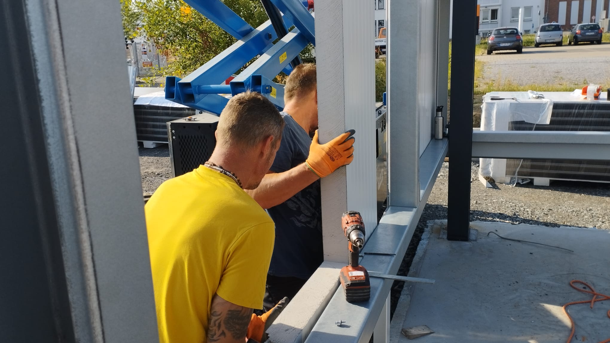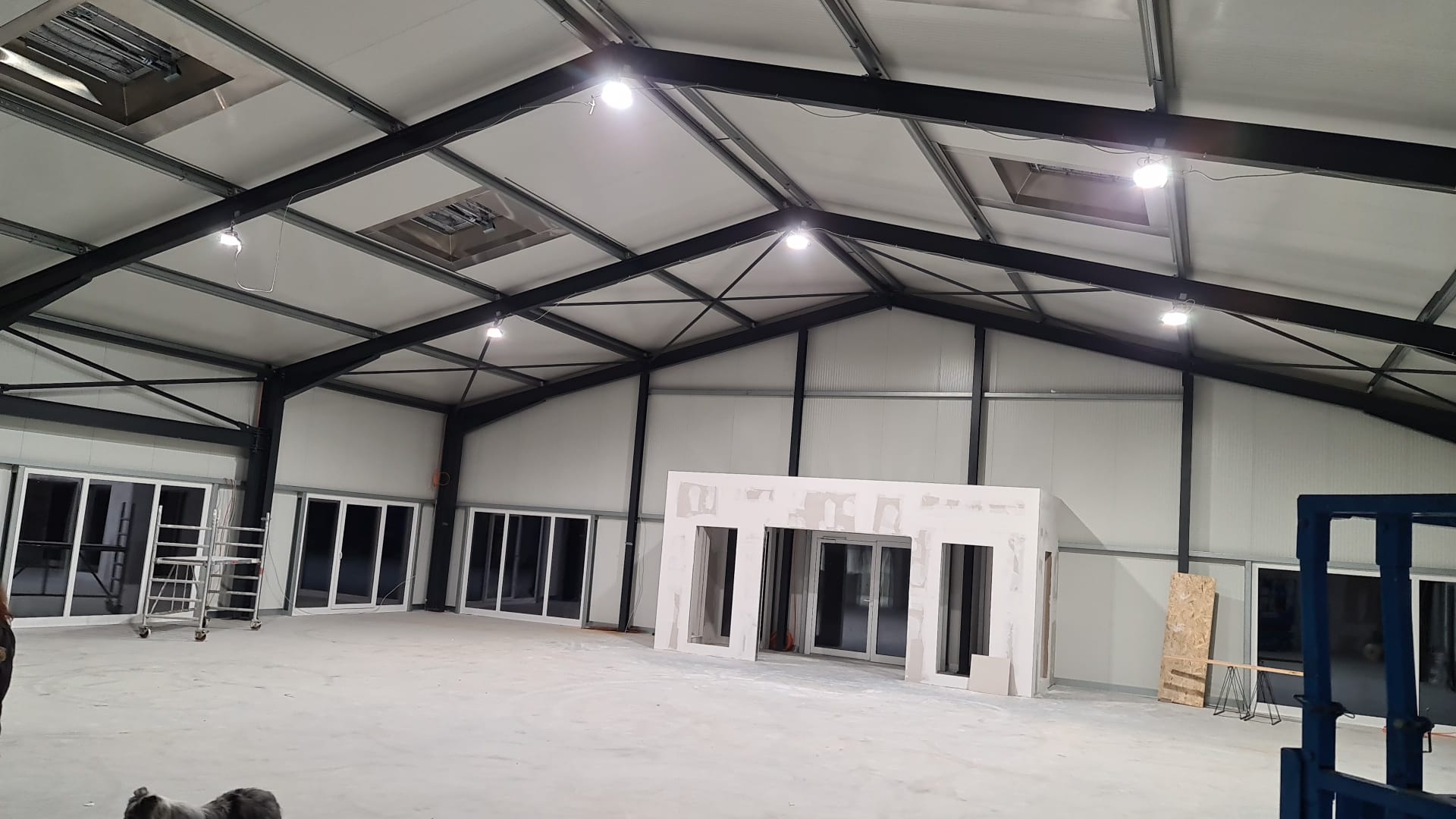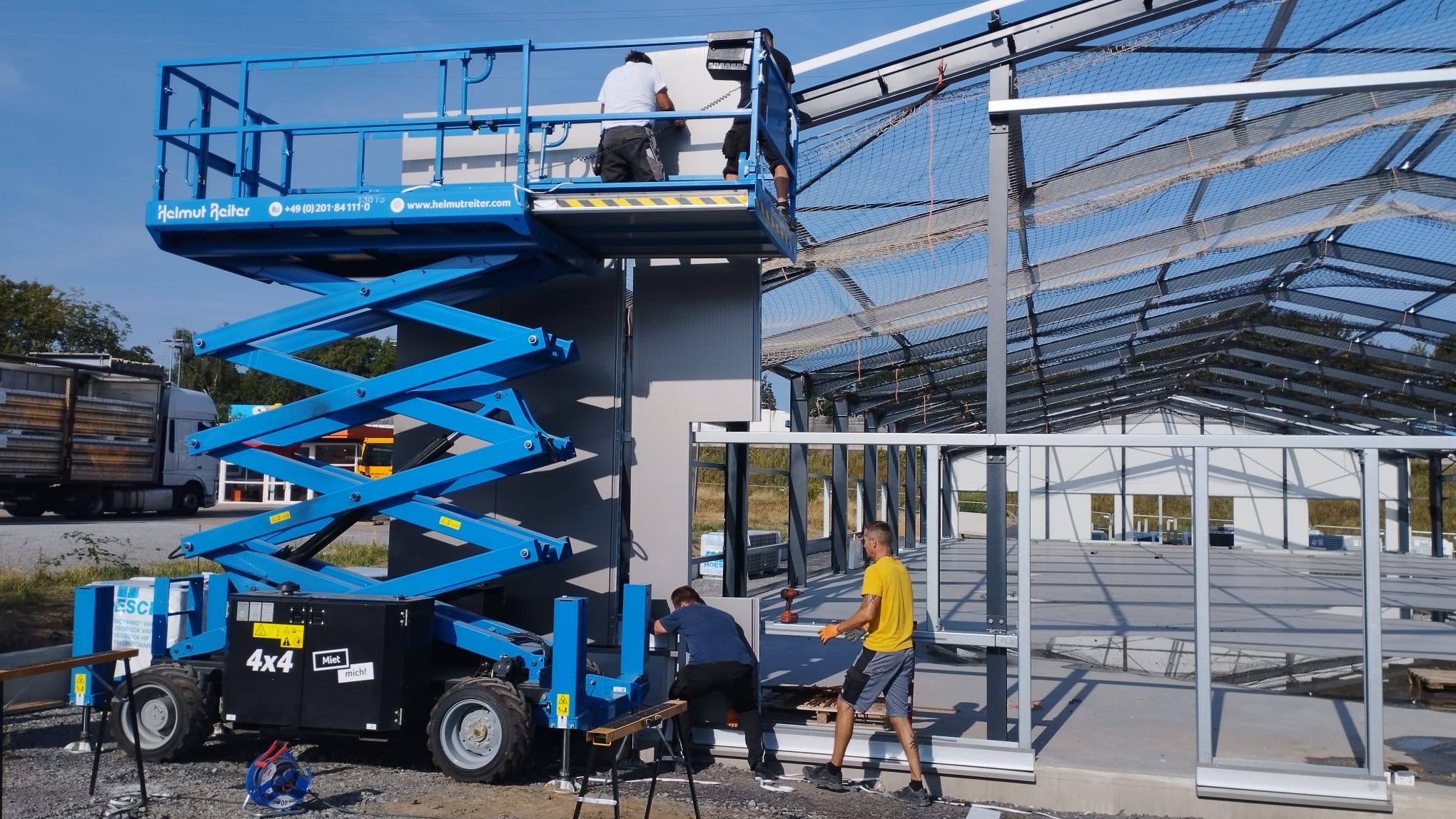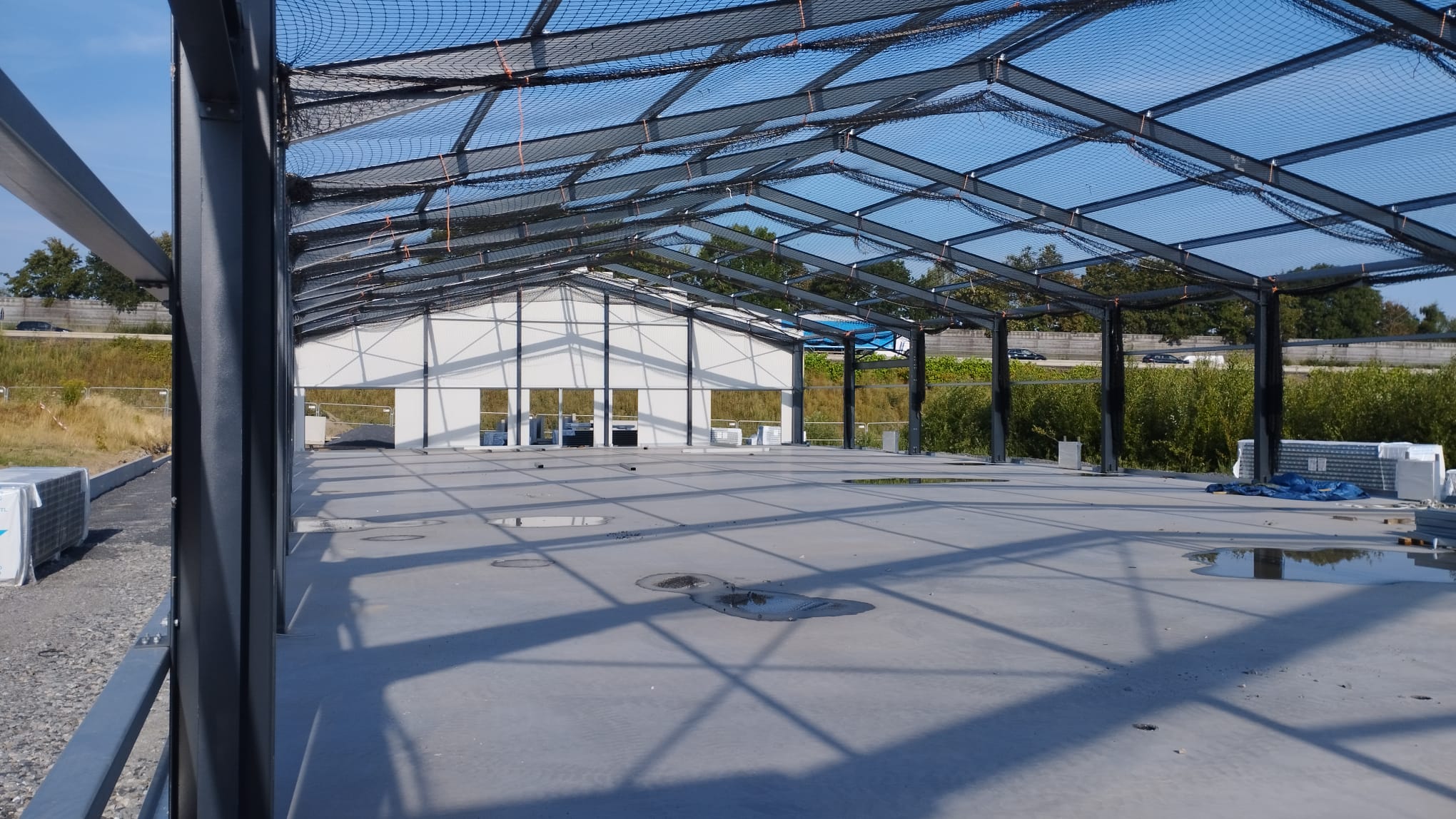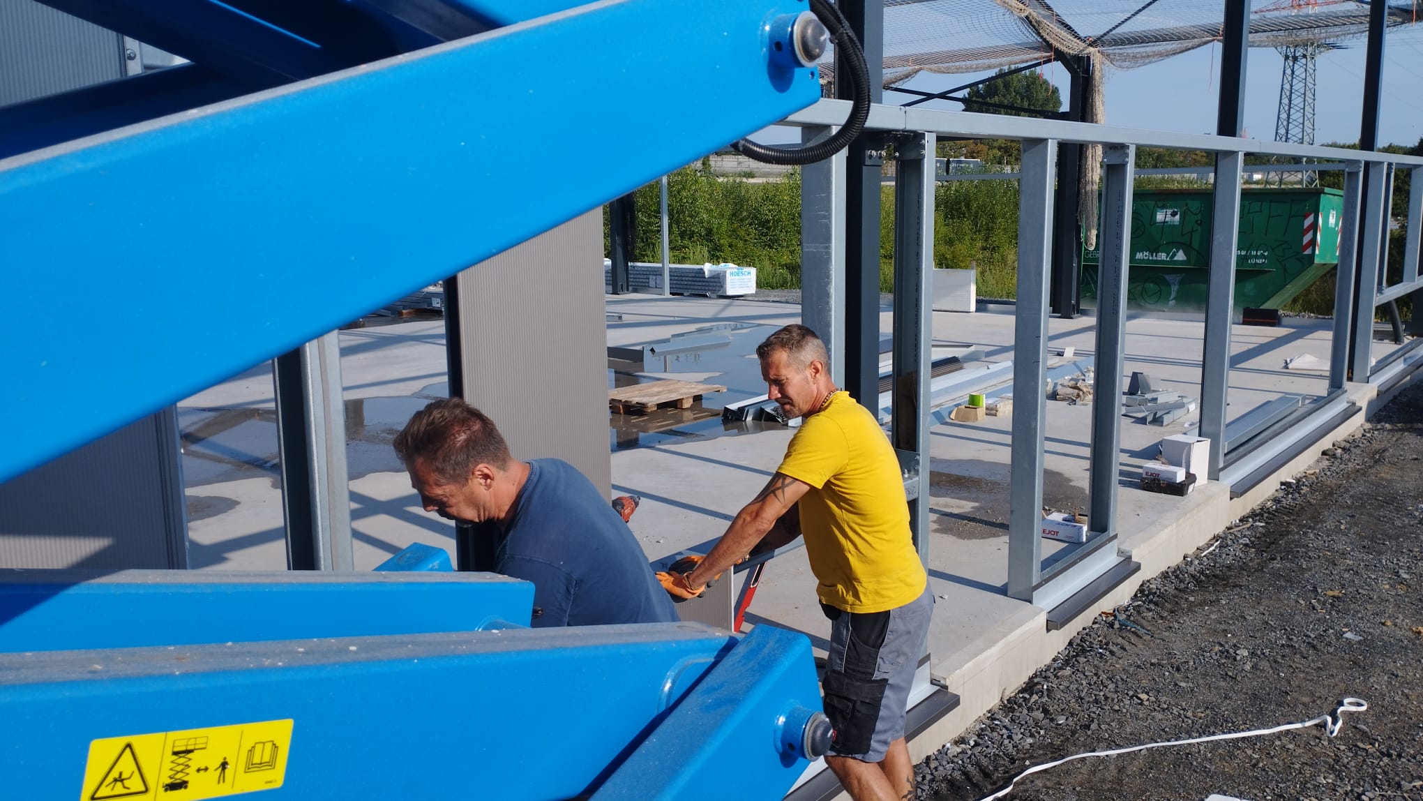 Langsam ist es als Halle erkennbar.Ab der 30. KW fangen die Monteure mit der Wand- und Dachverkleidung an.