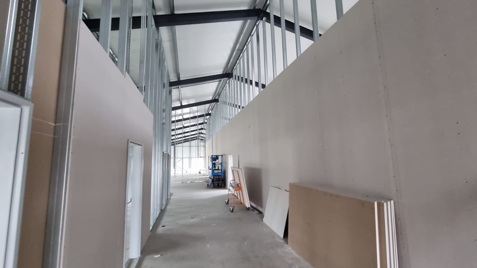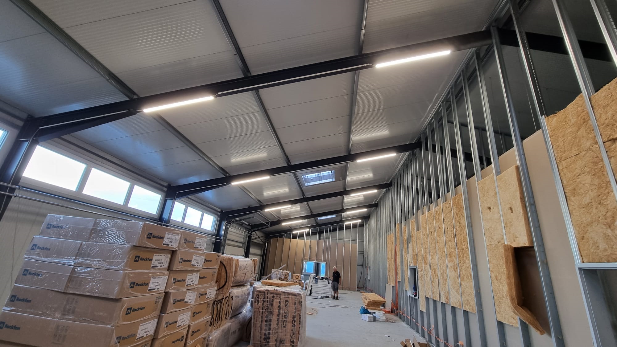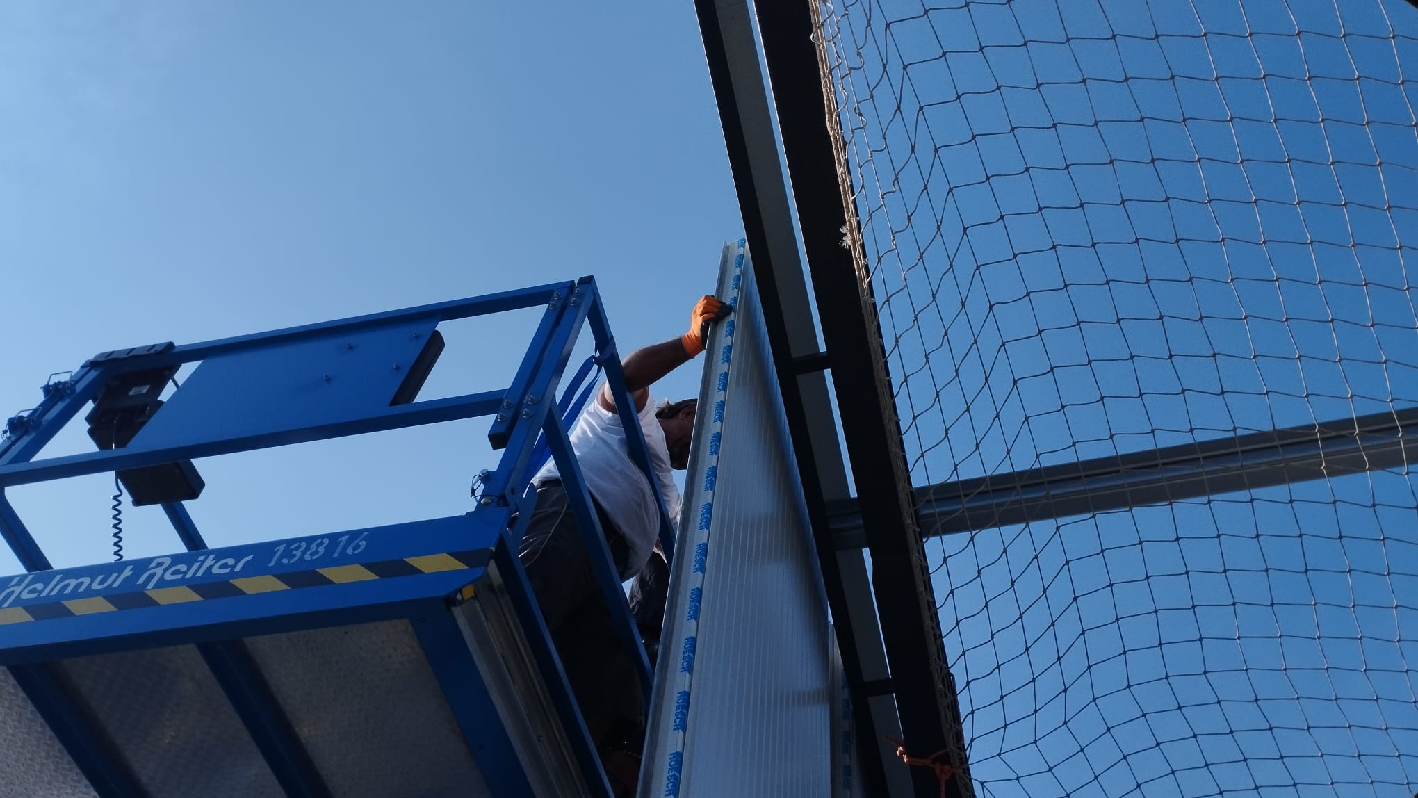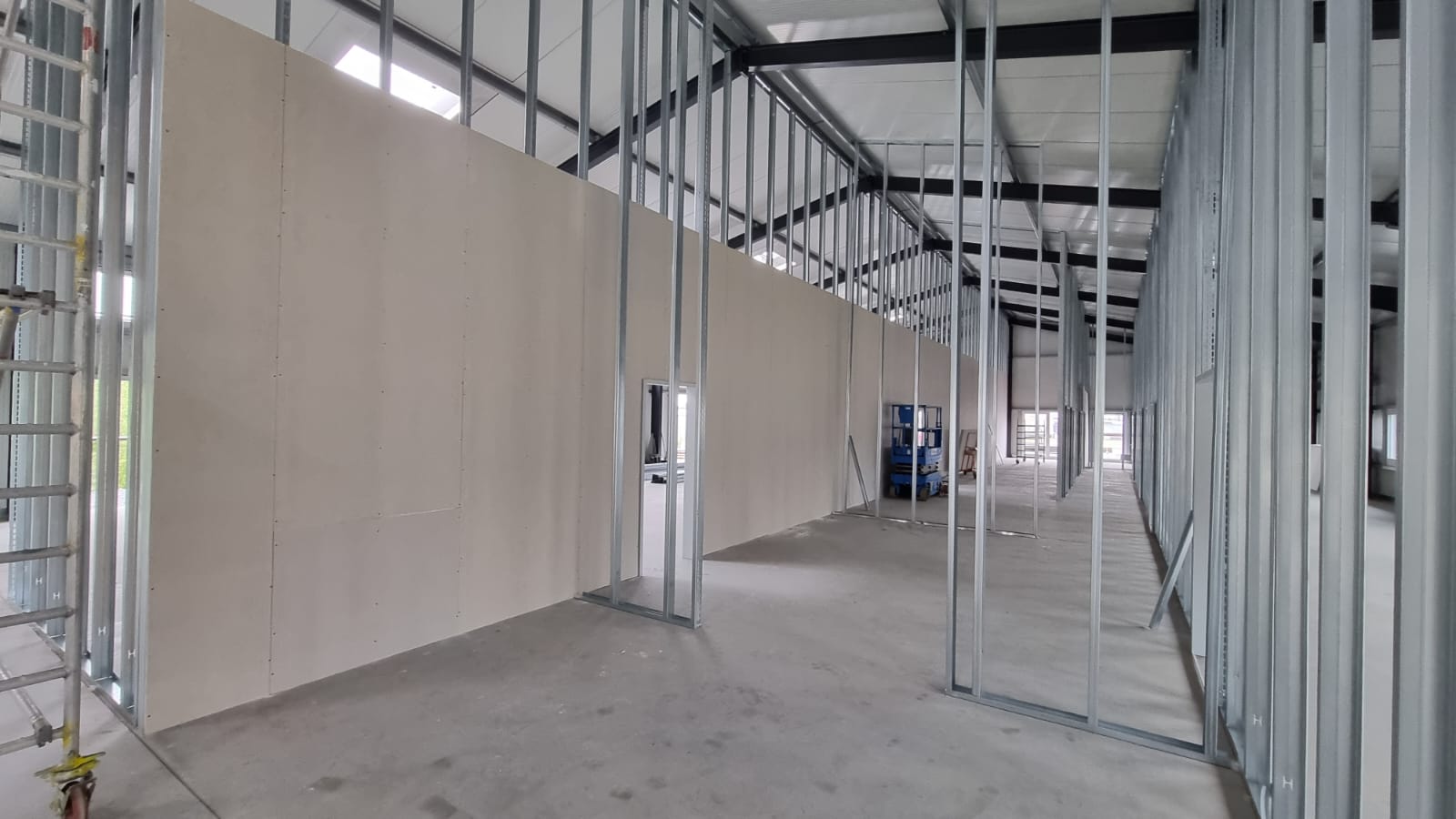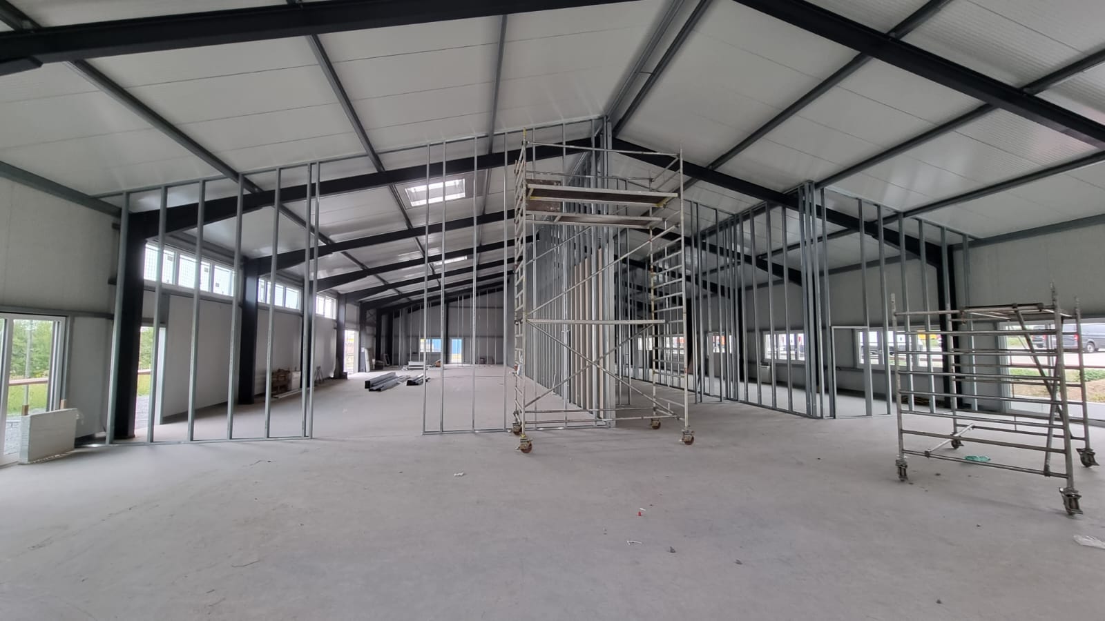 Langsam ist es als Halle erkennbar.Ab der 30. KW fangen die Monteure mit der Wand- und Dachverkleidung an.