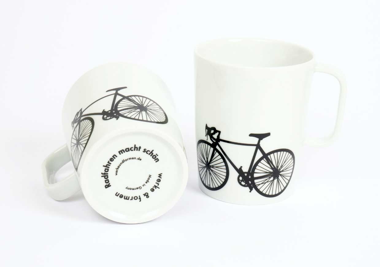 Mit diesem schlicht-schönen Becher starten Fahrradfreunde perfekt in den Tag. Ein ideales Geschenk für alle, die Fahrräder und Radfahren lieben!Motiv auf Vorder- und Rückseite hochwertiges Porzellan Füllmenge: ca. 270 ml Siebdruck bei 850 Grad eingebrannt kratz- und spülmaschinenfest hergestellt in Deutschland