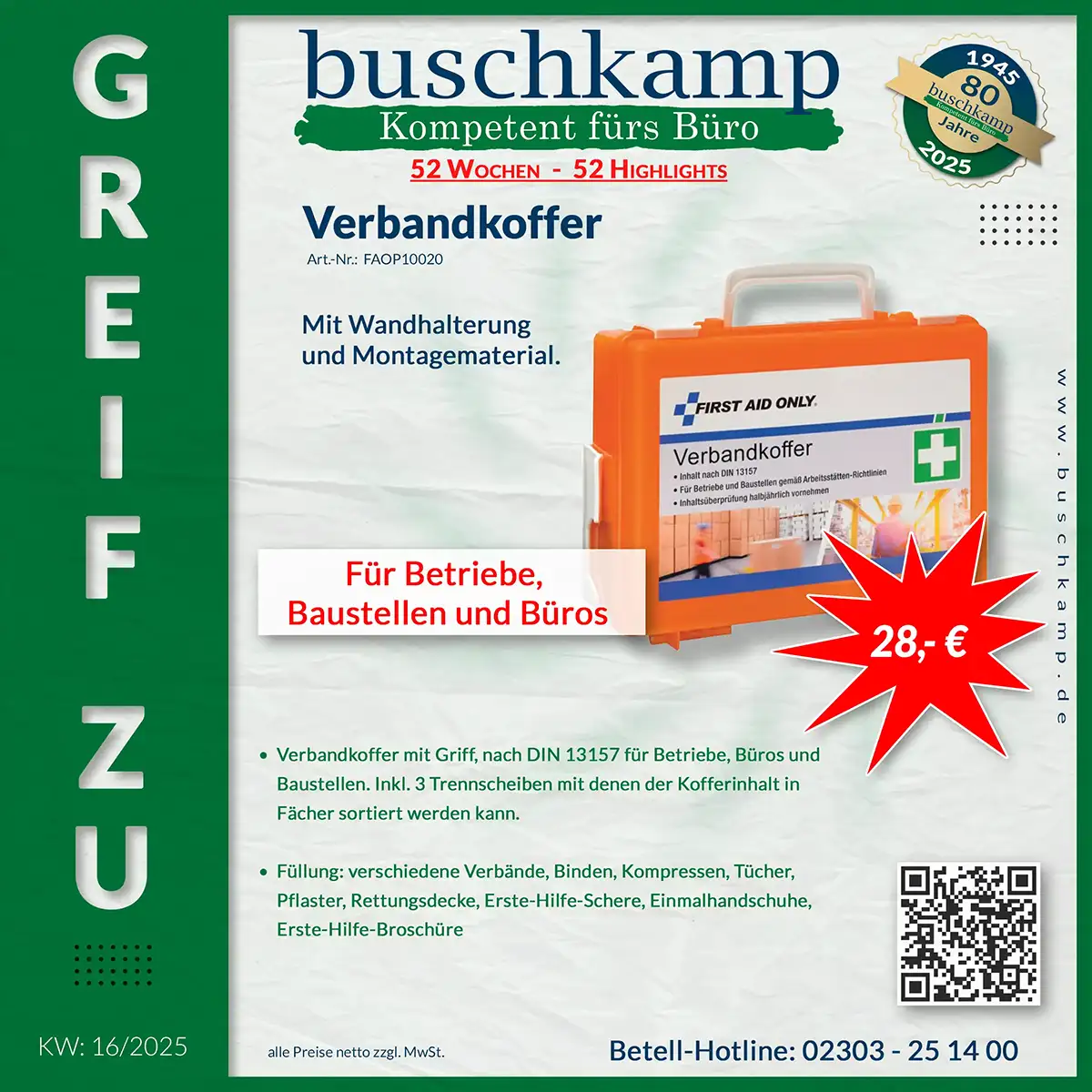 In unserem Jubiläumsjahr 2025 halten wir für Sie jede Woche ein neues Angebot und jeden Monat einen zusätzlichen Gratisartikel für Sie bereit!