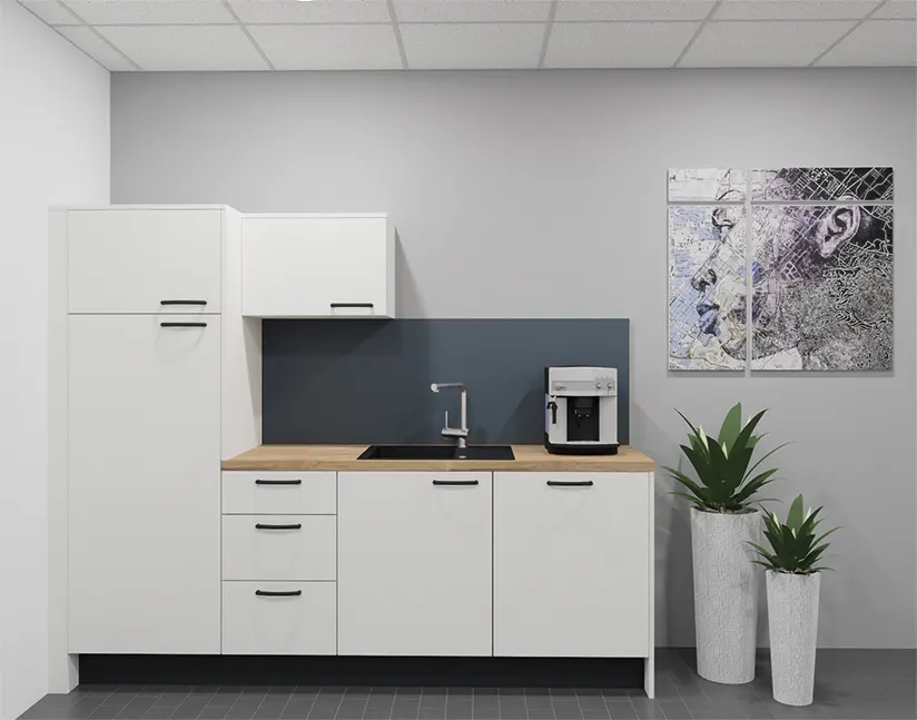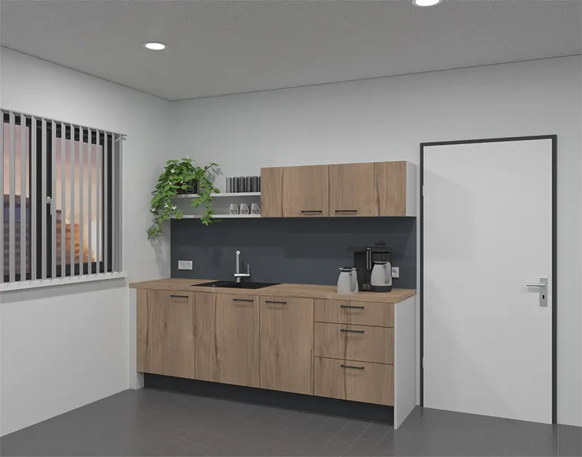 Stilvolle Büroküchen für produktive Pausen Die Gestaltung der Büroküche ist entscheidend, damit Mitarbeiter ihre Pausen gerne dort verbringen. Wir bieten individuelle Lösungen mit vielfältigen Ausführungsgrößen und Oberflächen, die für jeden Bedarf passen.